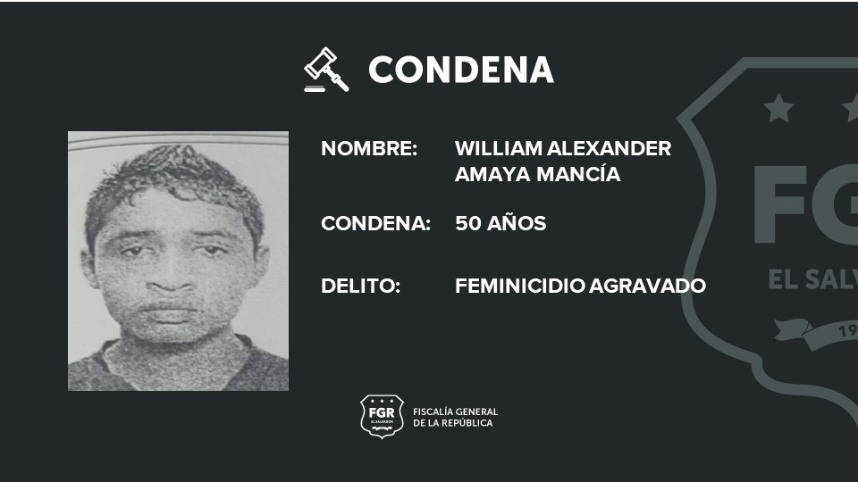 El Tribunal Especializado de Sentencia para una Vida Libre de Violencia y Discriminación para las Mujeres de San Salvador valoró todos los elementos y le fue impuesta a casa pandillero 50 años de cárcel por el delito de Feminicidio Agravado.
