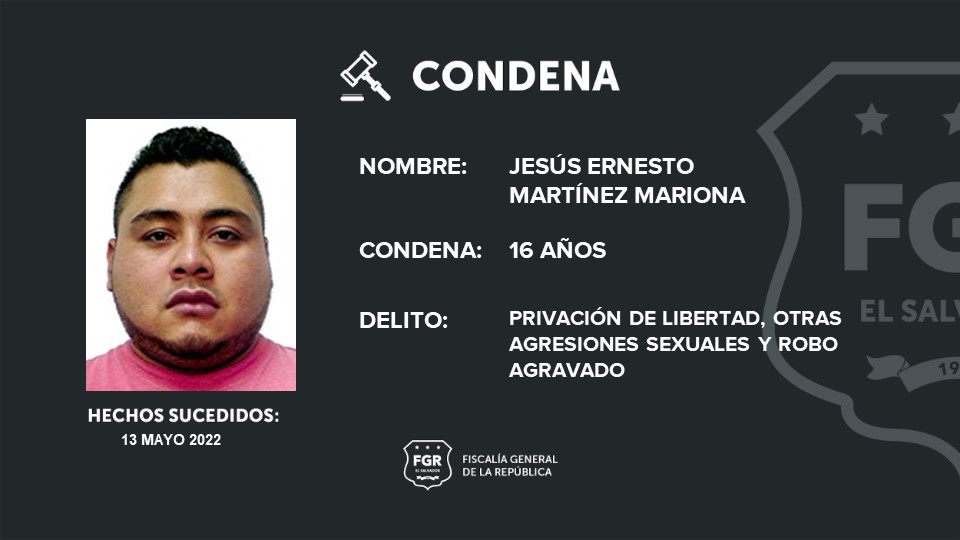 Apopa, San Salvador. A cumplir una pena de 16 años fue sentenciado Jesús Ernesto Martínez Mariona, luego de ser declarado culpable por privar de libertad a menor e intentar abusar sexualmente de ella.