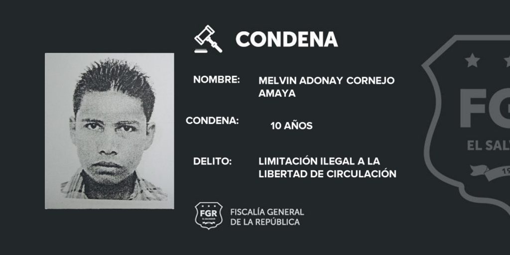 Melvin Adonay Cornejo Amaya, alias «Cuche», miembro de estructura terrorista deberá cumplir una pena de 10 años en una prisión luego de ser encontrado responsable penalmente al amenazar y obligar a una víctima para que abandonara su casa en la que residía.