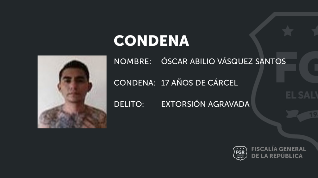 San Miguel. Fiscales del grupo Antiextorsiones de la oficina fiscal de San Miguel, lograron que se le impusiera una condena de 17 años de cárcel a Oscar Abilio Vásquez Santos por el delito de Extorsión Agravada.