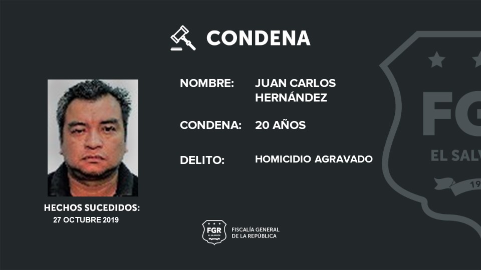 San Salvador. La Fiscalía General de la República (FGR) logró que un Tribunal de San Salvador declarara culpable a Juan Carlos Hernández, por haber sido el responsable de la muerte de una víctima. El crimen fue cometido el 27 de octubre del 2019, en el Bulevar Los Héroes, en esta capital.