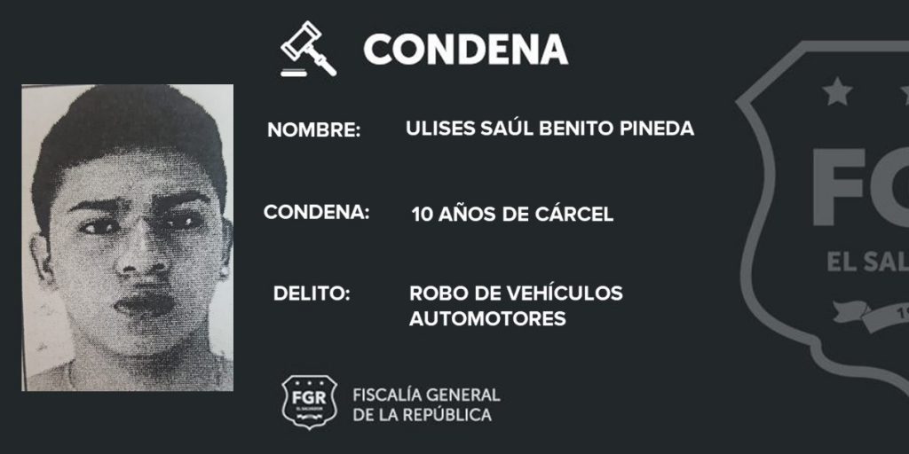San Salvador. Después que la Fiscalía General de la República comprobó con suficiente prueba que Ulises Saúl Benito Pineda se dedicaba a robar motocicletas, un juez le declaró cumplable y le impuso una condena de cárcel de diez años.