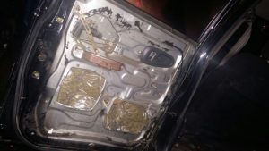 Al proceder al registro los agentes observaron que la tapicería de las puertas estaba removida, por lo que realizaron una requisa minuciosa a ambos automotores, encontrando paquetes de marihuana distribuidos en diferentes lugares.