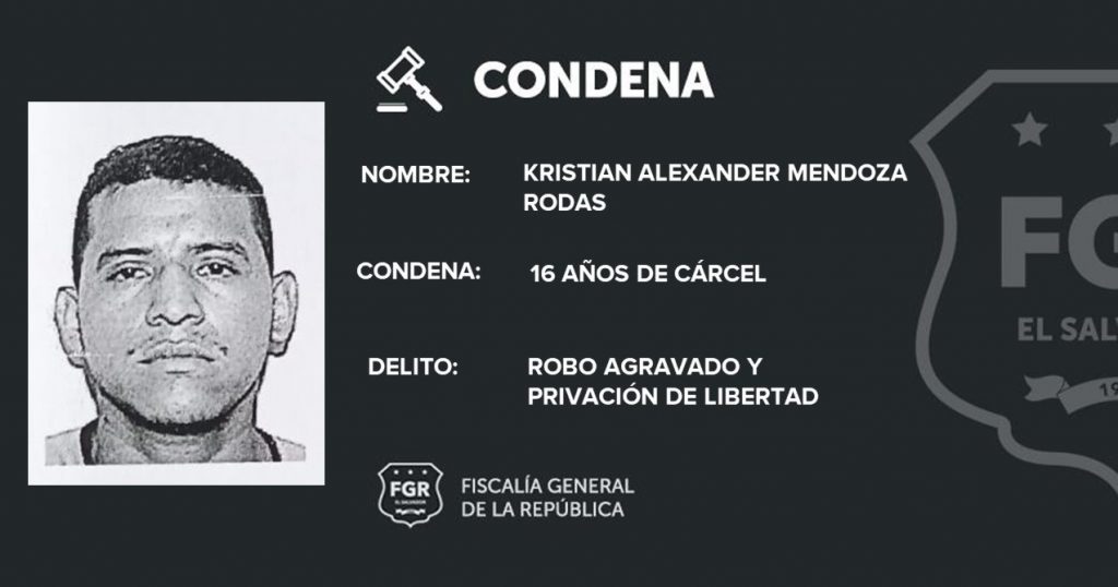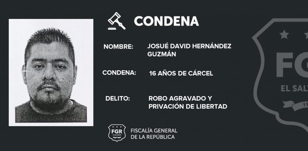 Dos delincuentes que se dedicaban a cometer asaltos a mano armada, ahora deberán cumplir condenas de 16 años en la cárcel. En el juicio la Fiscalía General de la República determinó que Josué David Hernández Guzmán y Kristian Alexander Mendoza Rodas fueron responsables de asaltar a una persona que se trasladaba en un taxi en esta capital.