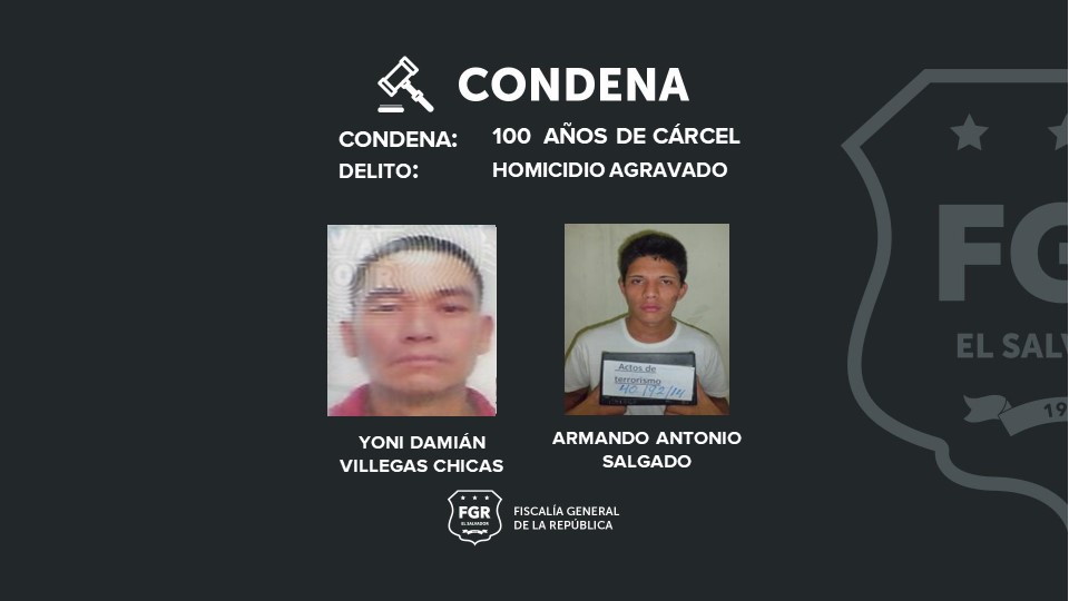 Mientras que Yoni Damián Villegas Chicas,  alias chuntaro y Armando Antonio Salgado, alias cazador, fueron condenados a 100 de prisión respectivamente por 5 homicidios agravado.