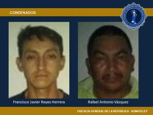Por sus acciones ilícitas, Francisco Javier Reyes Herrera de 22 años fue condenado a 14 años de cárcel. Y Rafael Antonio Vásquez de 52 años recibió la misma pena, pero se le adicionaron 3 años por el delito de tenencia ilegal de arma de fuego, que hicieron un total de 17 años.