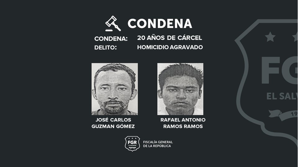 De acuerdo a las investigaciones de la Fiscalía General de la República (FGR), los imputados Rafael Antonio Ramos Ramos, alias «cangrejo» y José Carlos Guzmán Gómez, alias «chimbolo», cometieron el asesinato el 26 marzo del 2022 en Huizúcar, La Libertad.