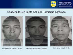 Los sujetos fueron identificados como: Denis Isaías Estrada Ayala, Víctor Manuel Valencia Zeceña y Milton Vladimir García Galindo; a quienes el Juez Segundo de Sentencia de Santa Ana, luego de la evidencia presentada por el fiscal del caso, durante la vista pública, entre las cuales están documental, pericial; y del testimonio de un testigo protegido, los condenó a 20 años de prisión a cada uno, por Homicidio Agravado.