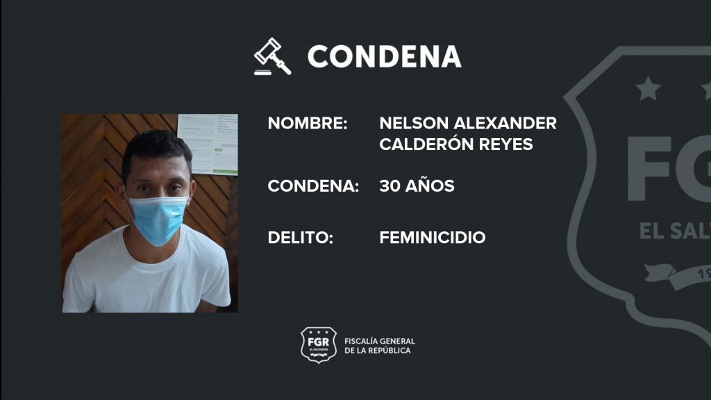 Santa Ana. Nelson Alexander Calderón Reyes fue condenado por haber cometido el delito de feminicidio en perjuicio de Mariela Guadalupe Landaverde Reyes, quien era estudiante de Ingeniería Agronómica de la Universidad Católica de El Salvador (UNICAES).