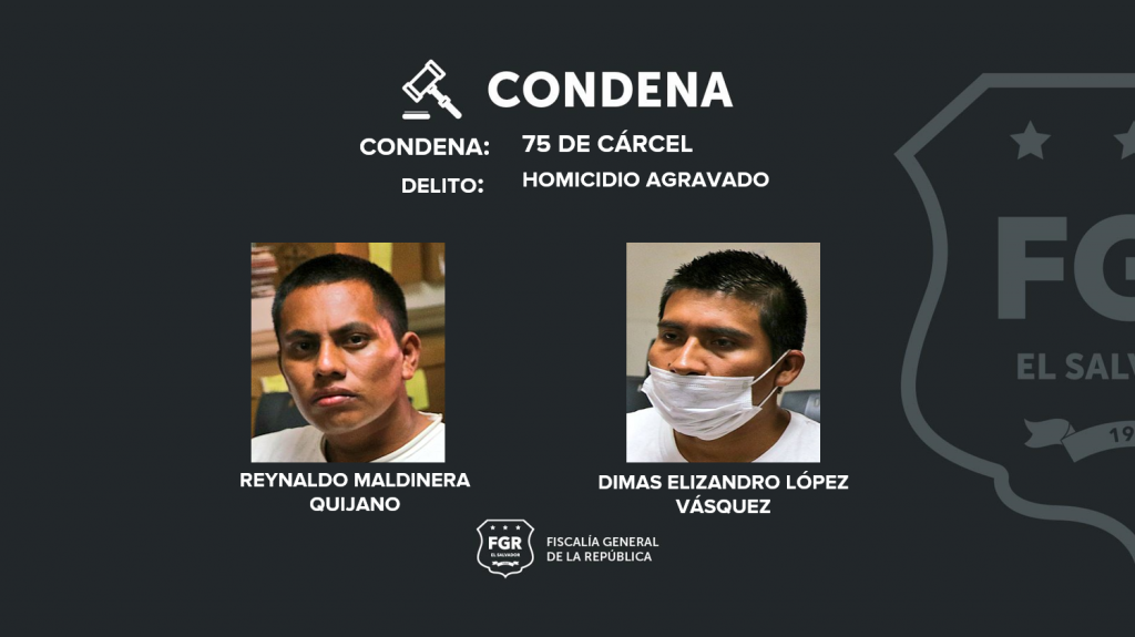 Sonsonate. Una condena de 75 años de prisión fue impuesta a Reynaldo Maldinera Quijano y Dimas Elizandro López Vásquez, quienes fueron encontrados culpables del asesinato de la profesora Maira Yesenia Rodríguez y sus padres Balmore Galileo Cerna y Ros Emilia de Cerna.