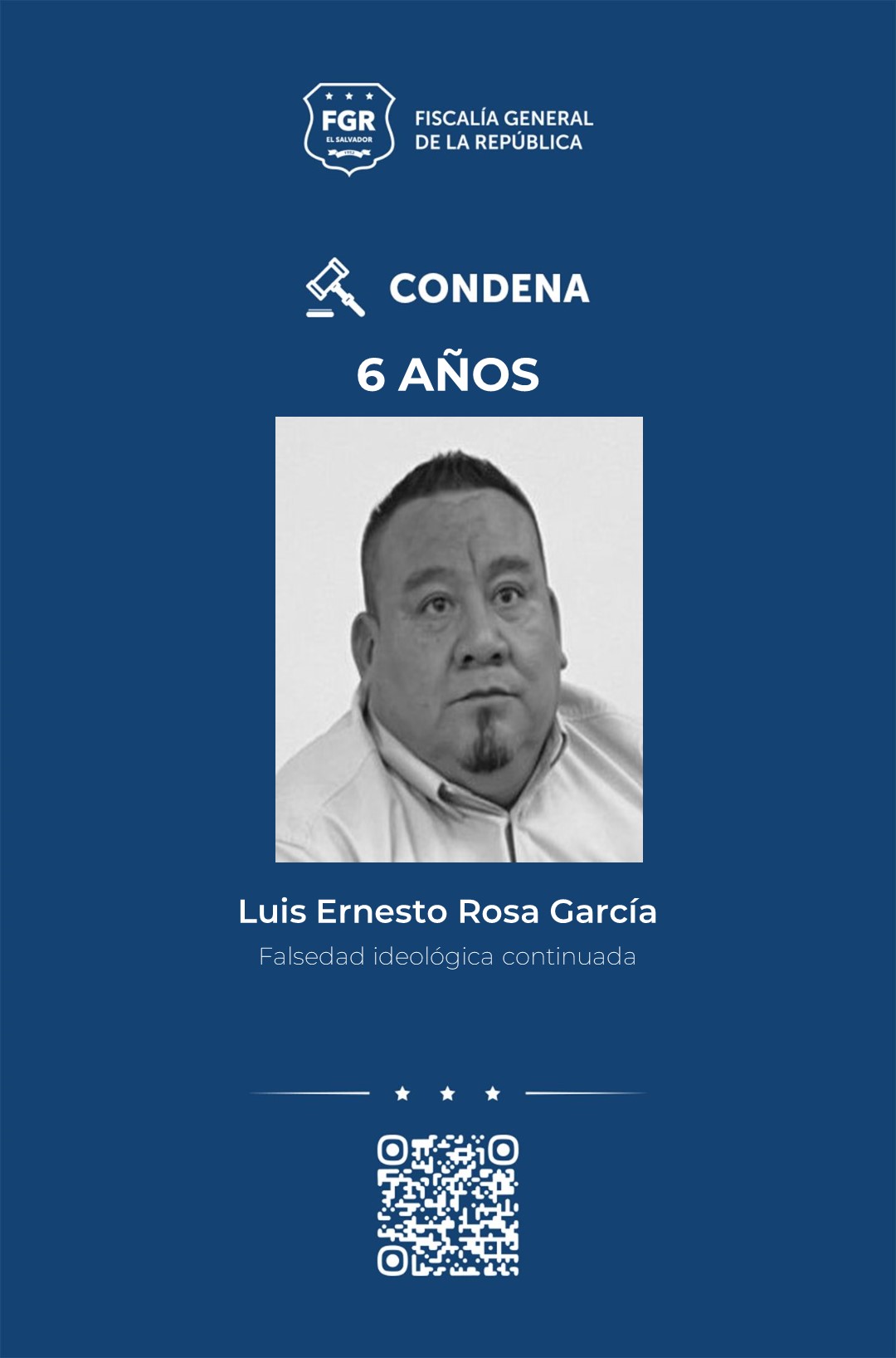 San Salvador. La Fiscalía General de la República (FGR) logró que el Tribunal 2º de Sentencia de San Salvador condenara a seis años de prisión para Luis Ernesto Rosa García por delito de falsedad ideológica, en modalidad continuada. El imputado trató de adueñarse ilegalmente de un inmueble y se valió de varias acciones ilícitas.