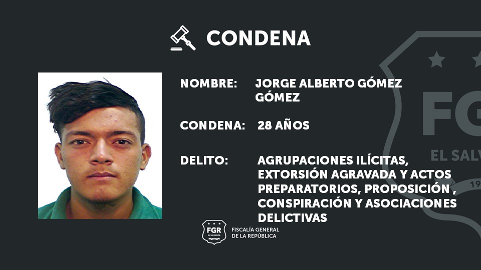 Mientras que los homboys Óscar Antonio Palacio Cañas, alias «muerte» y Jorge Alberto Gómez Gómez, alias «Tom», fueron condenados  a 35 y 28 años de cárcel respectivamente por Extorsión Agravada, Agrupaciones Ilícitas y por Actos Preparatorios, Proposición , Conspiración y Asociaciones Delictivas en Actividades relativas a las Drogas.