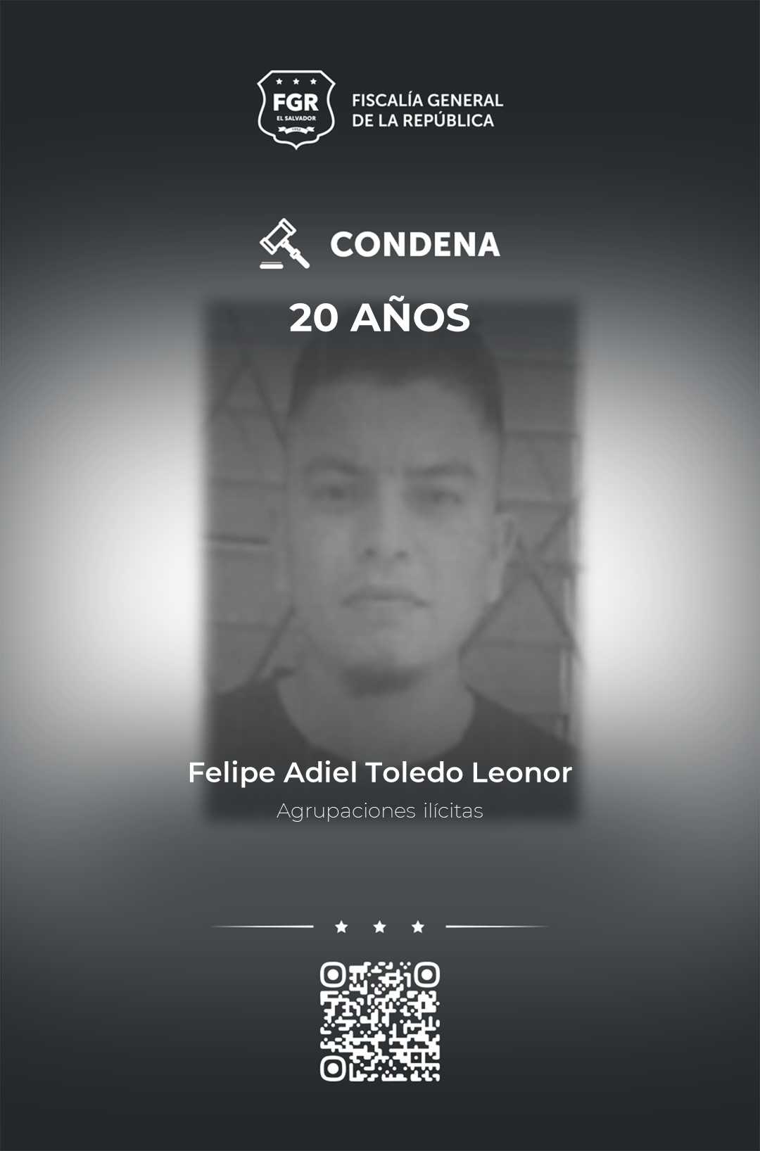 Los demás sentenciados a la misma pena carcelaria fueron Omar Aníbal Cruz Sion Edwin Antonio Vargas Sales, Oscar Geovani Osegueda Galdámez, Abel Vladimir Morales Aguilar, José Antonio Rodríguez Pérez, Gerson Eduardo Rivas Jiménez, Vladimir Antonio Rivas Flores, Wilber Vladimir Calles Martinez, José Adonay Trejo Aguilar con cargos de homeboys-extorsionistas.