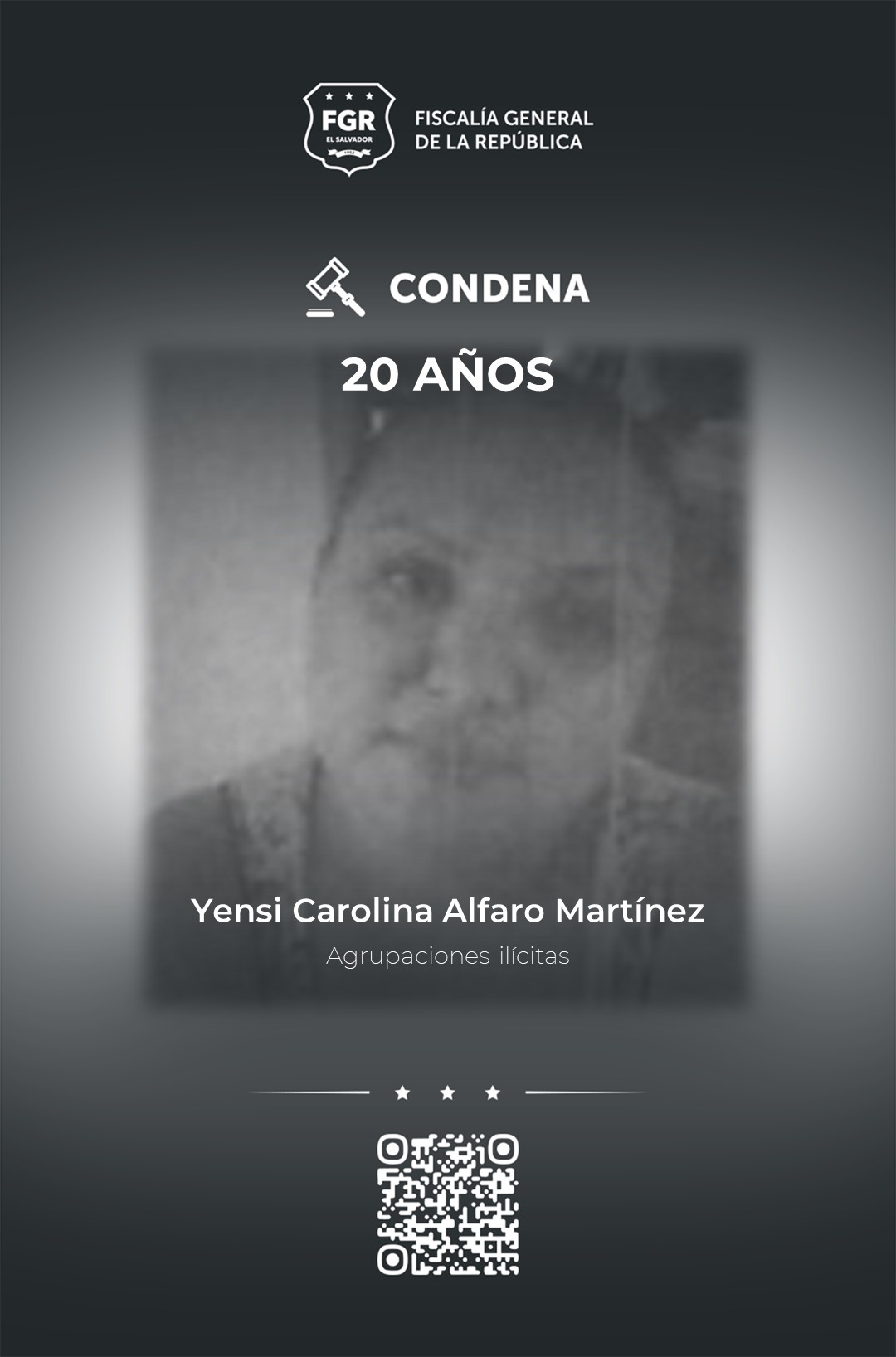 Finalmente fueron condenados a 20 años de prisión los pandilleros: Cristian Bladimir Márquez, Kevin Lisandro Hernández Ventura y Willian Isaac Damián Gutiérrez o Willian Isaac Damián González, Pablo Alfredo Quintanilla, Manuel de Jesús Quintanilla Henríquez, que funguían como colaboradores-poste, Douglas Ernesto Marroquín Arévalo que cumplía con el cargo de paro-poste, Yensi Carolina Alfaro Martínez, colaborador-extorsionista y Felipe Adiel Toledo Leonor, con funciones de homeboy-gatillero.