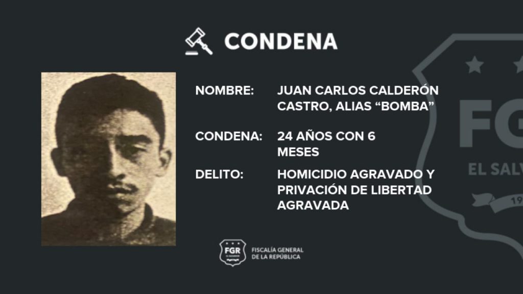 Santa Tecla. Juan Carlos Calderón Castro, pandillero de la MS, fue condenado a 24 años con 6 meses de prisión por haber asesinado a Francisco Javier Vásquez, el 21 de enero del 2016, y por participar en la Privación de Libertad de Oscar Arnulfo Guzmán, en el año 2019; ambos hechos fueron cometidos en el cantón Álvarez de Santa Tecla, La Libertad.
