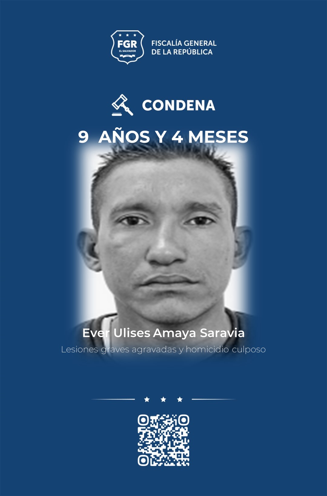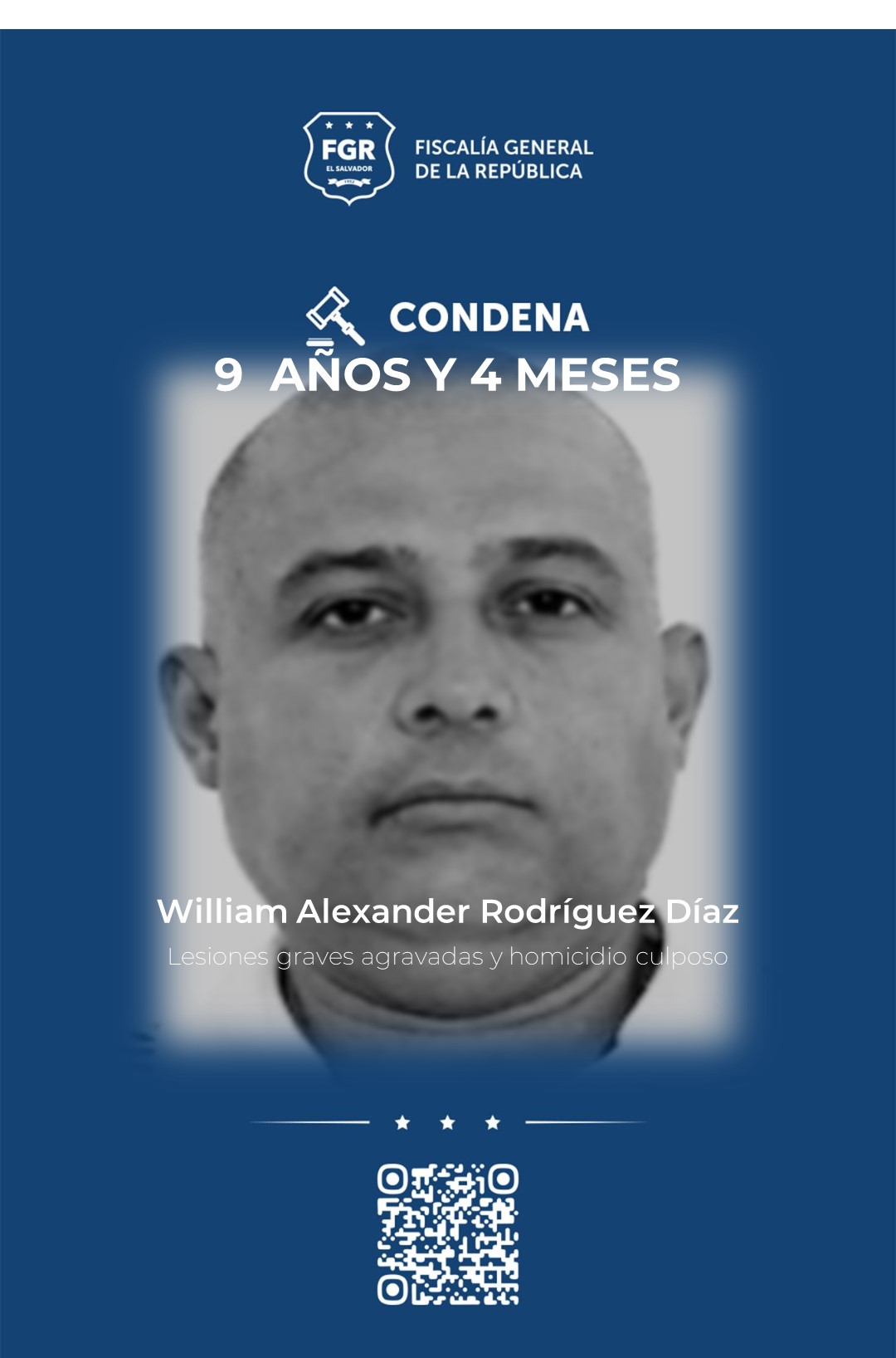 San Miguel. William Alexander Rodríguez Díaz, Pablo Ulises Blanco Rivera, Ever Ulises Amaya Saravia y José Misael Martínez Melgar fueron declarados culpables de cometer lesiones graves agravadas y homicidio culposo. Por estos crímenes la Fiscalía General de la República (FGR) logró que los cuatro hombres reciban una condena de 9 años y 4 meses de prisión.