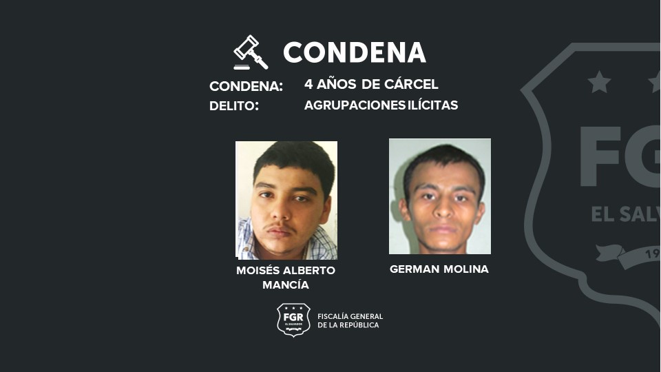 Osmani Isaí Hernández Arévalo, alias baxte y José Luis Campos, alias chapiadora, fueron condenados a 29 años por homicidio agravado (1) y agrupaciones ilícitas; además, el tribunal condenó a 4 años por agrupaciones ilícitas a los terroristas: German Antonio Molina Amaya, alias gorrita, Moisés Alberto Mancía Rodríguez, alias el perdido y Henry Omar Segovia Luna, alias baby gel.