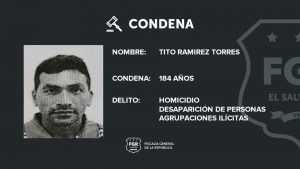 Dentro de las penas más significativas impuestas está la de Alexis Enrique Godínez Godínez condenado a 229 años de cárcel; German Ever Recinos Méndez (185 años), José Rafael González De León (125 años), Reyes Godinez Pérez (65 años), Daniel Ernesto Pineda (35 años), Blas Ismael Vides (44 años), Dimas Alfredo Orellana (44 años), Eduardo Angel Tamacas (44 años), Oscar Eduardo Fuentes (44 años), José Miguel Alas (35 años), José Miguel Sánchez (34 años) y Carlos Antonio Samayoa (34 años).