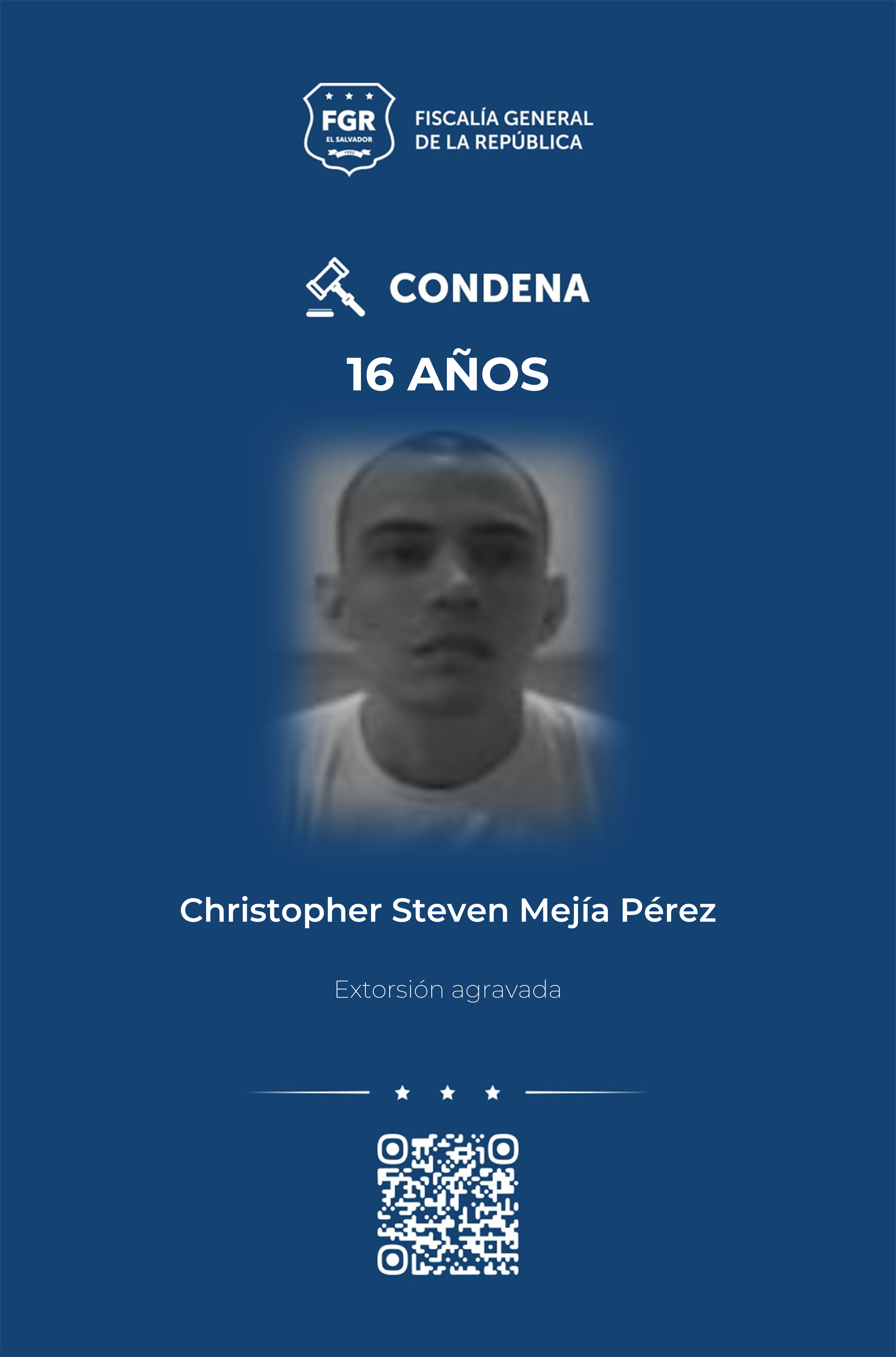 Según el reporte de la representación fiscal, Renán Antonio Mercadillo Villalta fue condenado a 20 años de cárcel, porque en dos ocasiones recogió el dinero de la extorsión.