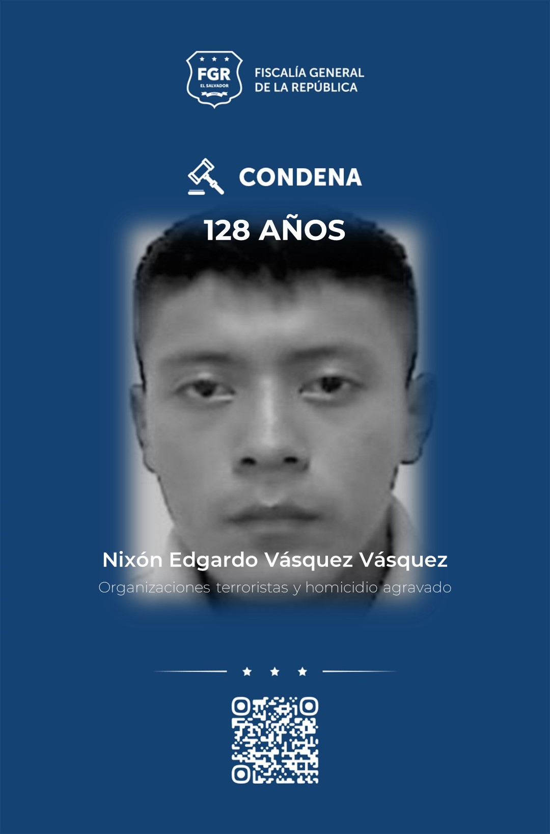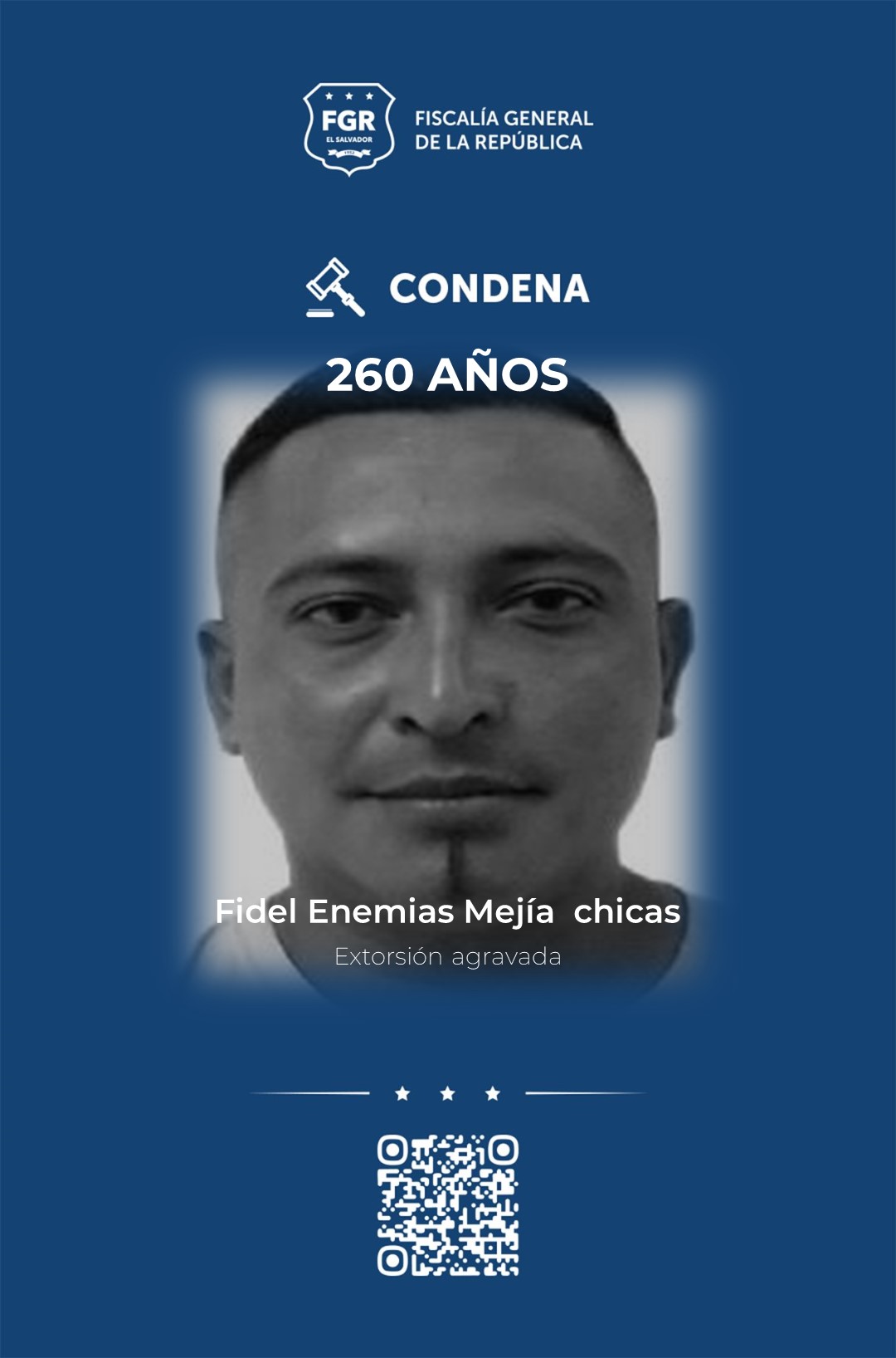 Fidel  Enemías Mejía Chicas fue condenado a 260 años de prisión por cometer extorsión agravada, a 128 fue condenado Nixon Edgardo Vásquez Vásquez, por organizaciones terroristas y homicidio agravado, mientras que Daniel Hernández González fue condenado a 120 años por homicidio agravado.
