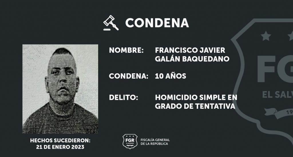 Zacatecoluca, La Paz. Gracias a las pruebas presentadas por los fiscales se ha logrado que Francisco Javier Galán sea condenado a 10 años de prisión por el delito de homicidio simple en grado de tentativa (intento de homicidio).