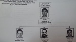 El jefe esta oficina Fiscal Emilio Hidalgo, identifico a los imputados como Luis Alberto Villeda, alias “gato”, de 29 años, cabecilla de la banda; José Ismael Landaverde Flores, de 30 años; Elmer Francisco Landaverde Portillo, de 30 años, y Óscar Raúl Landaverde Portillo de 31 años de edad; quienes fueron capturados mediante ordenes administrativas giradas por esta sede Fiscal, el 30 de mayo de 2016.