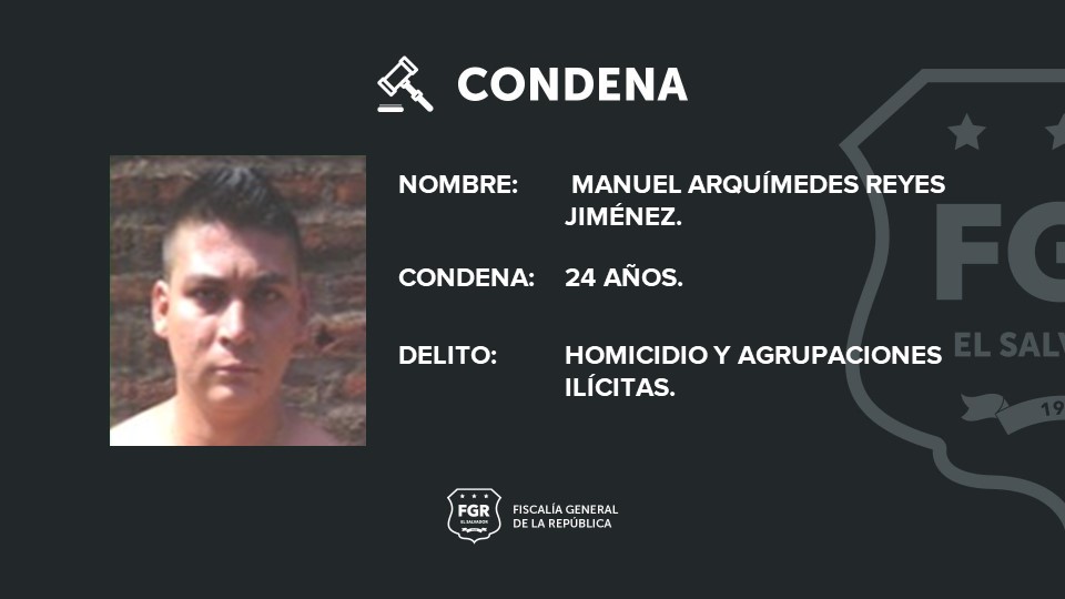 El ente fiscal dijo que José Alfredo Ventura Urrutia fue condenado a 60 años de cárcel por tres homicidios (20 años de prisión por cada víctima) y a 9 años por agrupaciones ilícitas, Manuel Arquímedes Reyes Jiménez, recibió una pena de 20 años de cárcel por un homicidio y 4 años más por agrupaciones ilícitas.