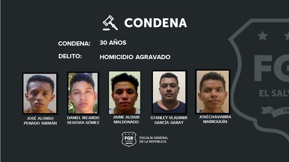 Apopa, San Salvador. La Fiscalía nuevamente logró que se aplicaran ejemplares condenas contra 10 criminales, las cuales van desde los 30 hasta los 90 años de cárcel. Los imputados fueron declarados culpables por participar en varios homicidios ocurridos en en el municipio de Apopa; cada delincuente deberá indemnizar a las familias afectadas.
