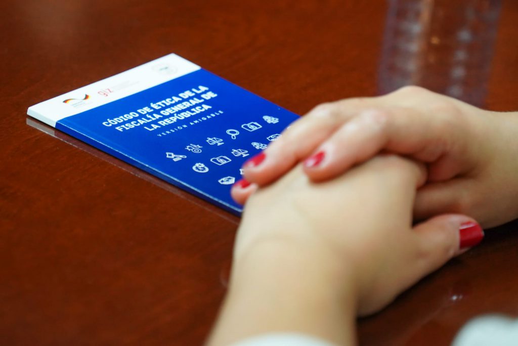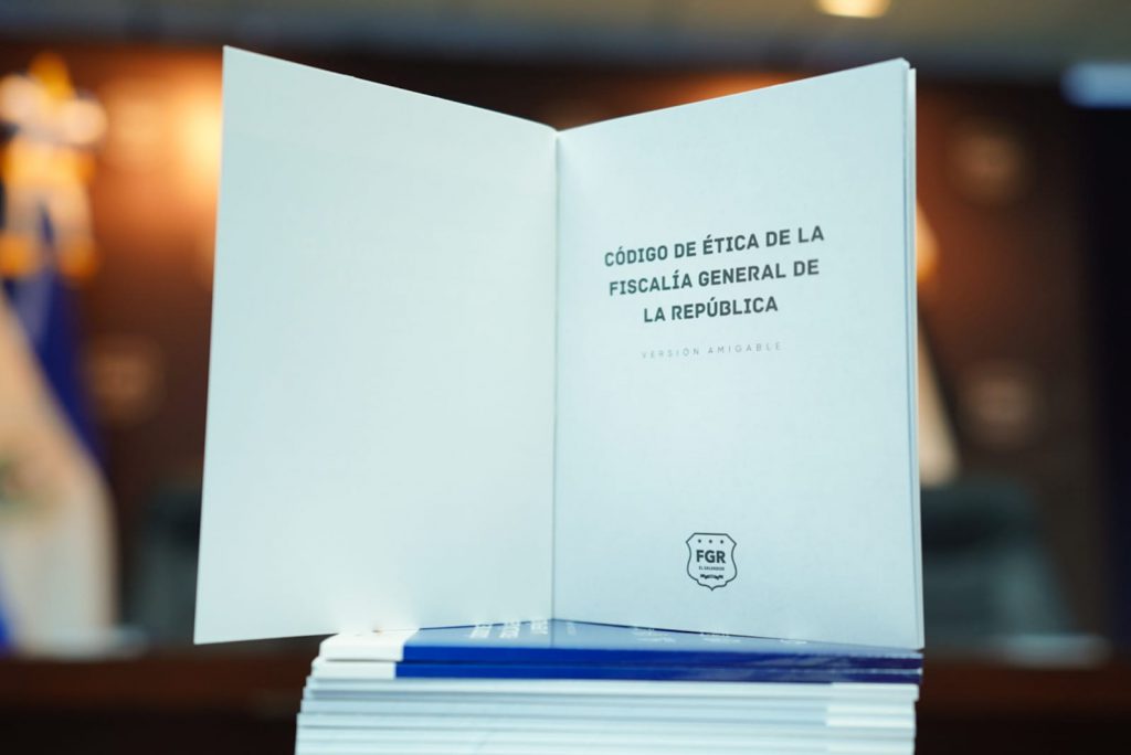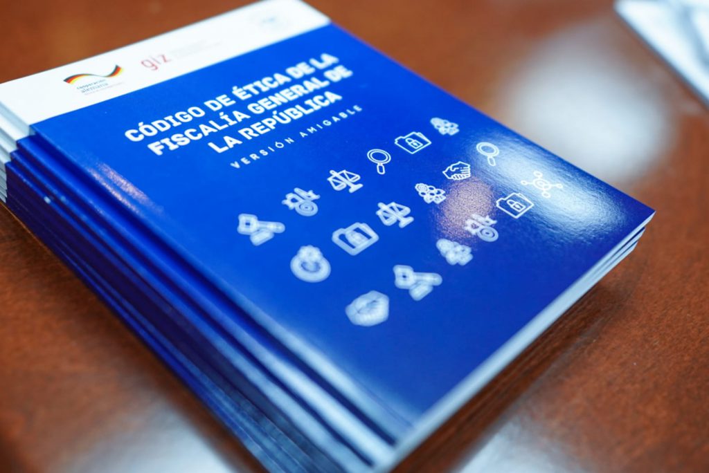 La Cooperación alemana ha contribuido en el proceso de elaboración, impresión y socialización del Código de Ética de la FGR, elaboración de videos sobre la vivencia de los principios y valores de la Institución; de igual forma ha brindado asistencia técnica en el diseño y contenido del módulo de divulgación del referido documento normativo desde el aula virtual de la Escuela de Capacitación Fiscal.