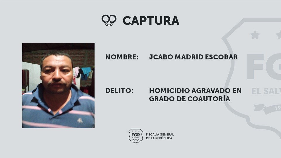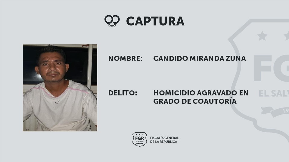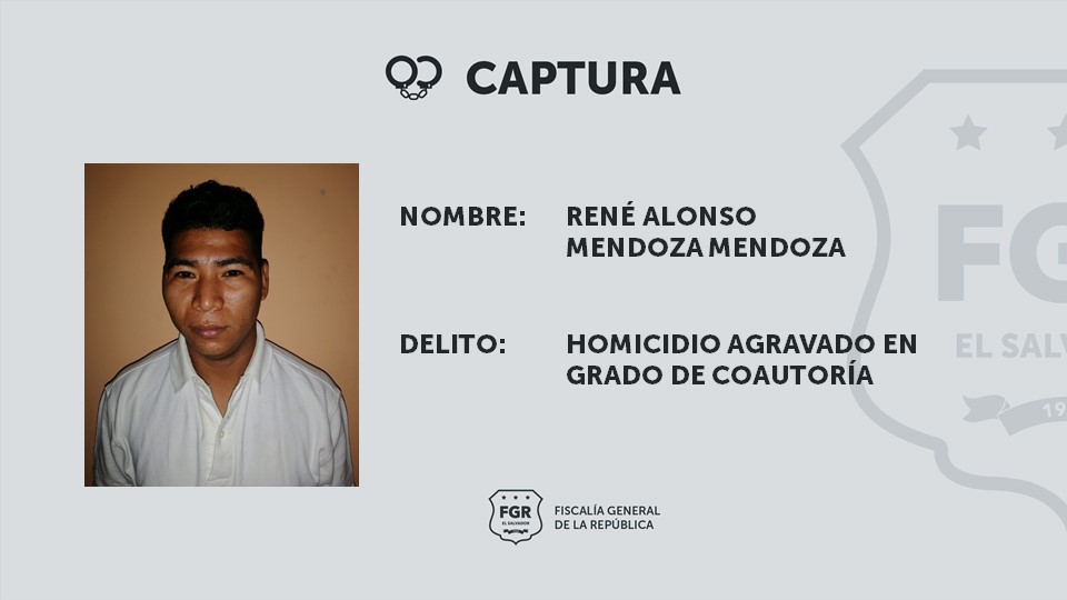 Ahuachapán. Por orden de la Fiscalía General de la República (FGR) se capturó a Cristian José Jiménez dueñas, Candido Miranda Zuna, René Alonso Mendoza Mendoza y Jacobo Madrid Escobar, a quienes se les acusa de ser coautores en el asesinato de Cristian José Pineda Dueñas. El crimen fue cometido el 26 de octubre de 2022 en horas de la madrugada, en el cantón La Ceiba, municipio de San Francisco Menéndez, Ahuachapán.