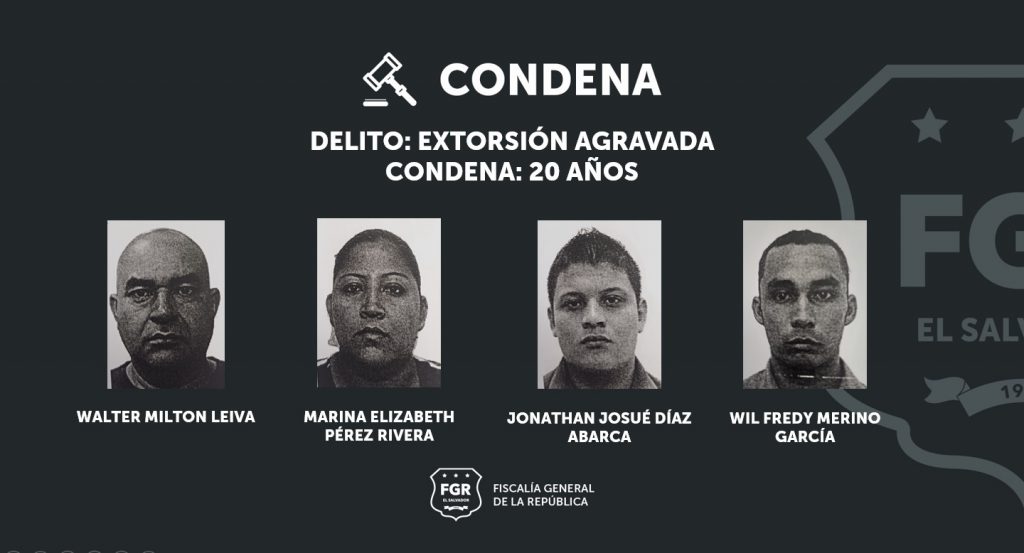Zacatecoluca, La Paz. Gracias a las contundentes pruebas presentadas por los fiscales, fue posible que cuatro peligrosos miembros de la pandilla Barrio 18 sean condenados a 20 años de prisión por el delito de extorsión agravada.