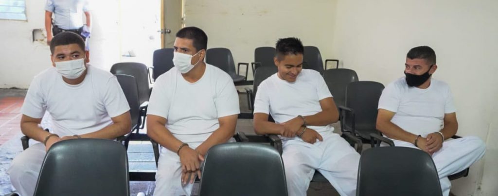Los sentenciados: Ronald Alberto Portillo Casero, Israel Guevara García, Enrique Armando Landaverde Parada y Deren Albayero Varela González fueron detenidos en tres vehículos automotores, el 11 de julio del 2021.