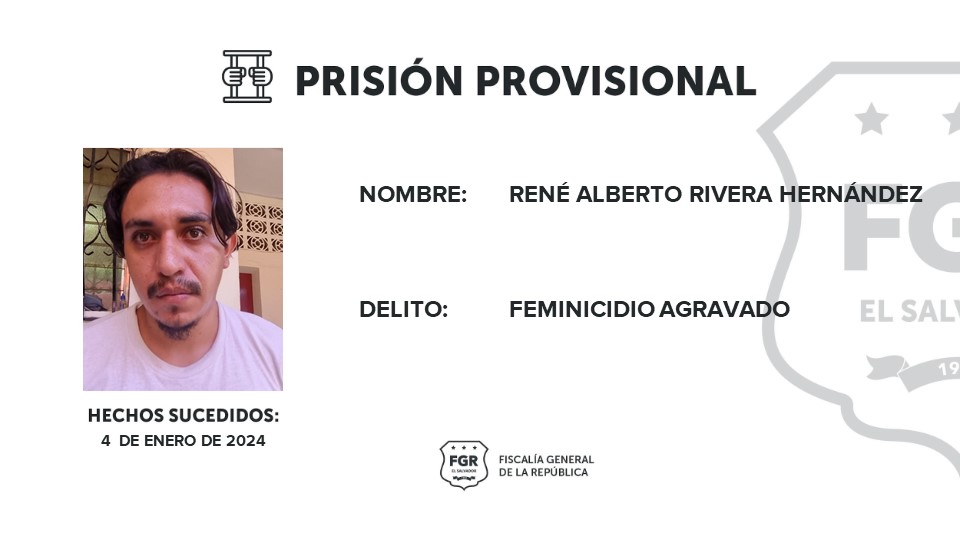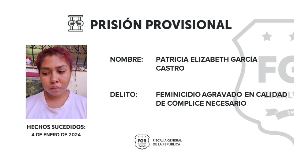 Usulután. La Fiscalía General de la República (FGR) logró que el Juzgado Tercero de Paz de Usulután, decretara instrucción formal con detención provisional para René Alberto Rivera Hernández y Patricia Elizabeth García Castro, quienes son los principales sospechosos del feminicidio agravado de una niña de 3 años.