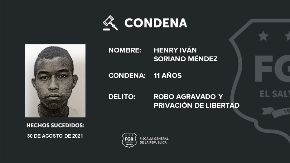 Ahuachapán. Por haber privado de libertad a una persona, Henry Iván Soriano Méndez, fue sentenciado a once años de prisión. En un juicio, la Fiscalía comprobó que el imputado fue responsable del hecho cometido el 30 de agosto de 2021.