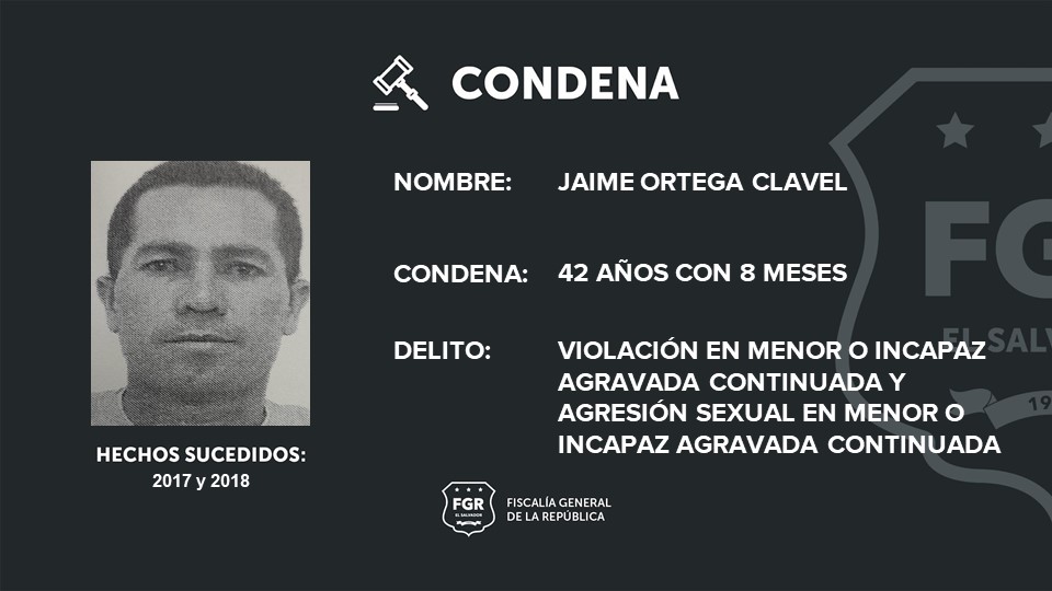 Ortega Clave fue condenado por el Tribunal de Sentencia de Chalatenango, gracias a las abundantes pruebas que presentó la representación fiscal, las cuales fueron determinantes para que el juzgador le impusiera la ejemplar condena.