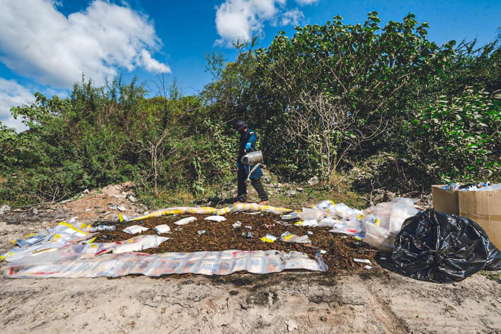 La quema realizada en Changallo, Ilopango, fue ejecutada en coordinación de la FGR, con la División Antinarcóticos y División Técnica Científica Forense de la PNC.
