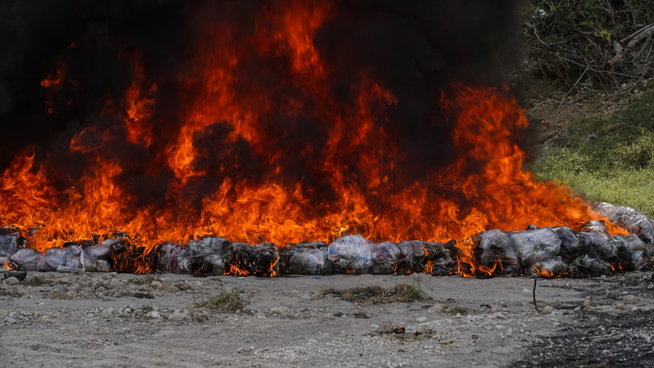 Changallo, Ilopango. La Fiscalía General de la República (FGR), con el apoyo de personal de la División Antinarcóticos de la Policía Nacional Civil (PNC), concretaron la destrucción de 2,128 kilos de cocaína, valorada en $53,497,920 millones de dólares.