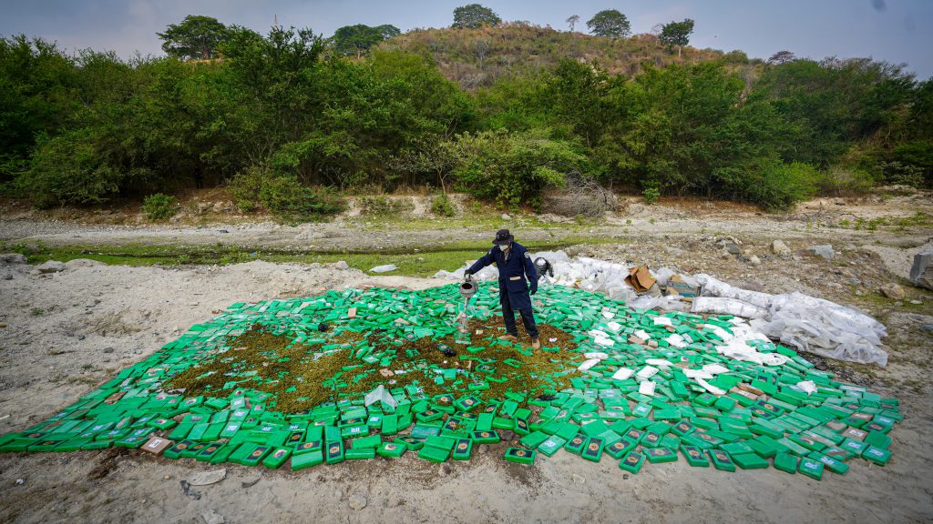 Entre la destrucción está la última incautación en alta mar de 1,482 kilos de cocaína valorada en US$37,050.000.00 de dólares.