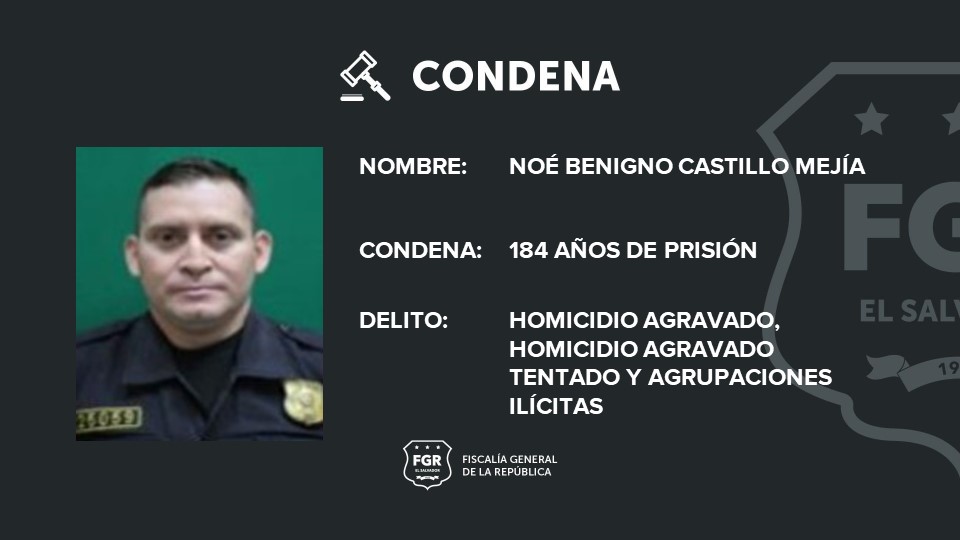 También, Noé Benigno Castillo Mejía recibió una condena de 184 años, por homicidio agravado, homicidio agravado tentado y agrupaciones ilícitas.