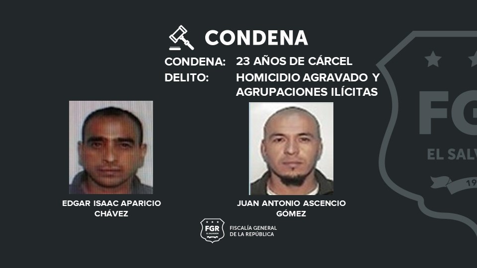 Se suman a las sentencias la de Edgar Isaac Aparicio Chávez y Juan Antonio Ascencio Gómez, quienes purgarán una pena de 23 años de prisión por homicidio agravado y agrupaciones ilícitas.