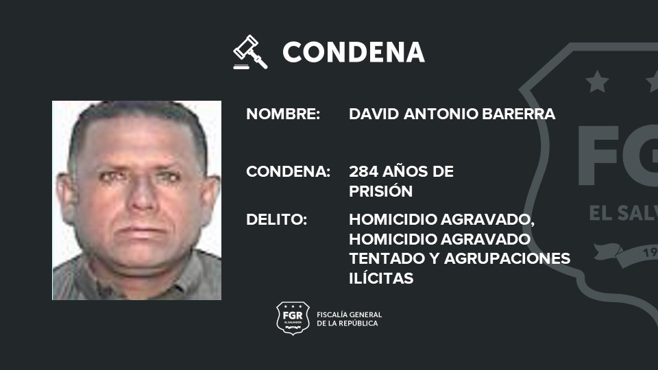 Mientras, que David Antonio a Barrera estará en prisión los próximos 284 años, por homicidio agravado, homicidio agravado tentado y agrupaciones ilícitas.
