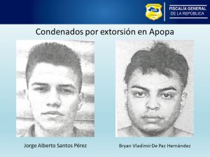 Apopa. La Unidad de delitos relativos al Patrimonio Privado de la oficina fiscal de Apopa logró condenar a 10 años de prisión a dos miembros de pandilla por el delito de Extorsión Agravada.