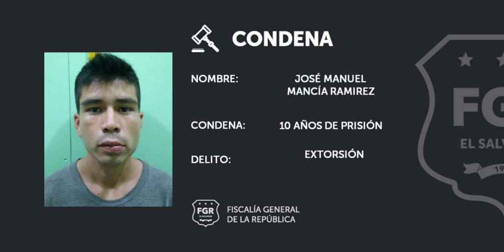 Fiscales de la Unidad Antiextorsiones de Chalatenango lograron que el Tribunal de esa ciudad impusiera una pena de 10 años de cárcel a dos pandilleros miembros de la estructura terrorista MS13, por el delito de Extorsión en perjuicio de una víctima que goza de régimen de protección.