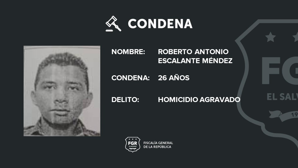 Santa Ana. 26 años de cárcel logró la Fiscalía para Roberto Antonio Escalante Méndez, René Simón Granados Salazar, quienes mataron a una persona con arma de fuego en el cantón Potrerios del Matazano en Santa Ana.