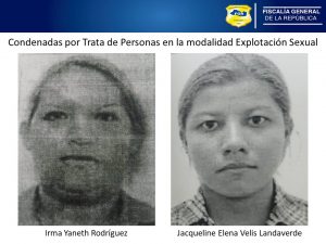 La Unidad Especializada de Trata y Tráfico Ilegal de Personas dio a conocer que las imputadas son Irma Yaneth Rodríguez y Jacqueline Elena Velis Landaverde, quienes fueron llevadas a la vista pública ante el Tribunal Primero de Sentencia de Santa Tecla, en el departamento de La Libertad.