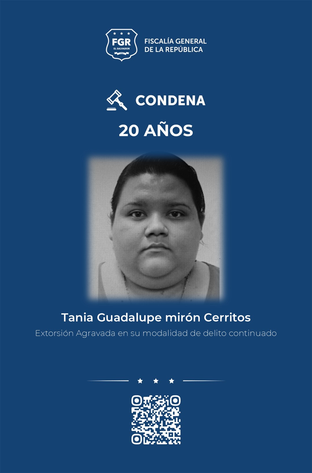 Santa Ana. La Fiscalía General de la República (FGR) logró que Mariela del Carmen Sánchez Sayes y Tania Guadalupe Mirón Cerritos sean condenadas a 20 años de cárcel, cada una, por el delito de extorsión agravada.