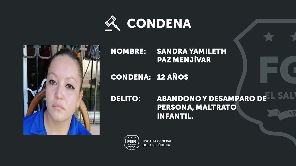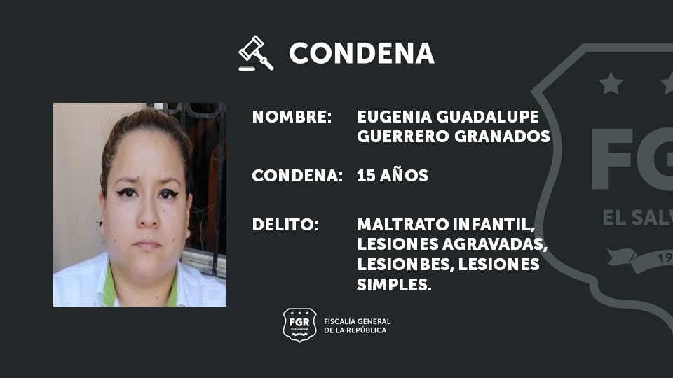 Santa Ana. Las condenadas son Eugenia Guadalupe Guerrero Granados y Sandra Yamileth Paz Menjívar y en el juicio, la Fiscalía General de la República demostró la culpabilidad de ambas en los delitos de Abandono y Desamparo de Persona, Maltrato Infantil, Lesiones Agravadas y Lesiones Simples.
