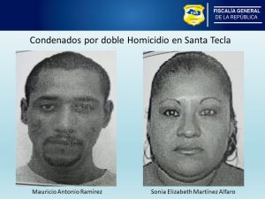 Fiscales de la Unidad de Vida de la oficina de Santa Tecla informaron que un Tribunal de Sentencia esta ciudad encontró suficientes elementos probatorios para imponer una condena de 60 años de prisión para Mauricio Antonio Ramírez y Sonia Elizabeth Martínez. Un menor de edad que también participó del hecho fue condenado el año pasado a 15 años de internamiento.