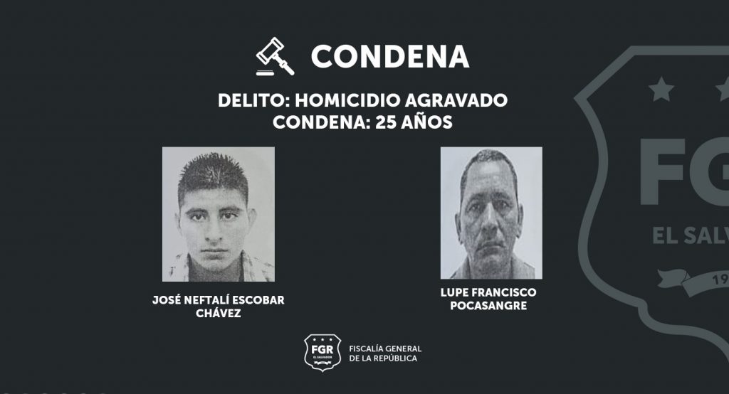 Ilobasco, Cabañas. Gracias a las robustas pruebas presentadas por los fiscales fue posible hacer justicia y que Lupe Francisco Pocasangre y José Neftalí Escobar Chávez fueron condenados a 25 años de cárcel, por el delito de homicidio agravado.