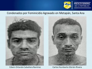 Santa Ana. Carlos Humberto Sibrián Rivera y Edwin Orlando Caballero Ramírez, fueron declarados responsables y condenados por el delito de Feminicidio Agravado, en perjuicio de la vida de Daysi Edith Rodríguez ocurrido el 11 de junio de 2018, en la colonia Nueva San Luis, del municipio de Metapán, departamento de Santa Ana.